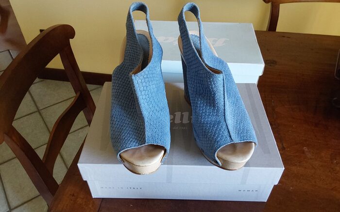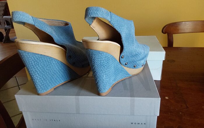 Zeppe numero 38, prese qui, mai messe perchè troppo alte per me, molto belle nessun difetto ottima fattura. Plantare in pelle, rivestimento scamosciato.