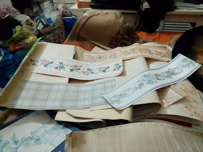 Come da titolo sono pezzi di carta da parati in varie misure e disegni e colori