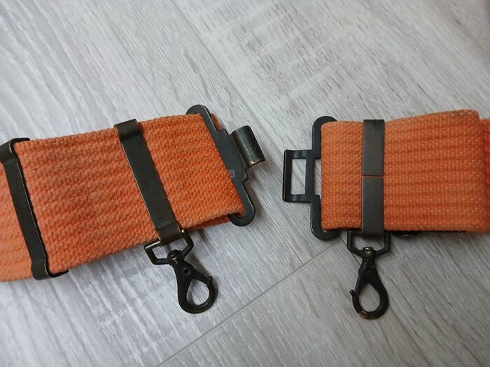 Cintura con moschettoni. Immagino sia attrezzatura da lavoro ma non ho idea. Penna per le dimensioni. .
