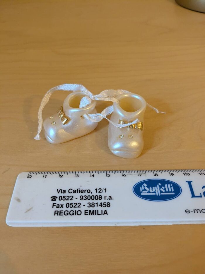 Decorazione in resina a forma di scarpine nessun difetto .