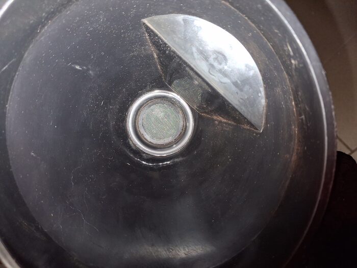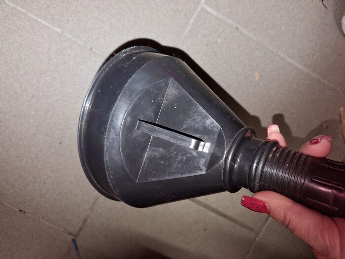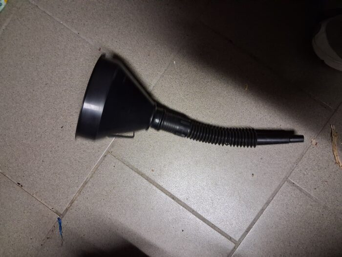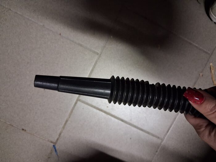 In plastica. Credo per benzina ecc. Mai usato ma era in garage da un pochino .