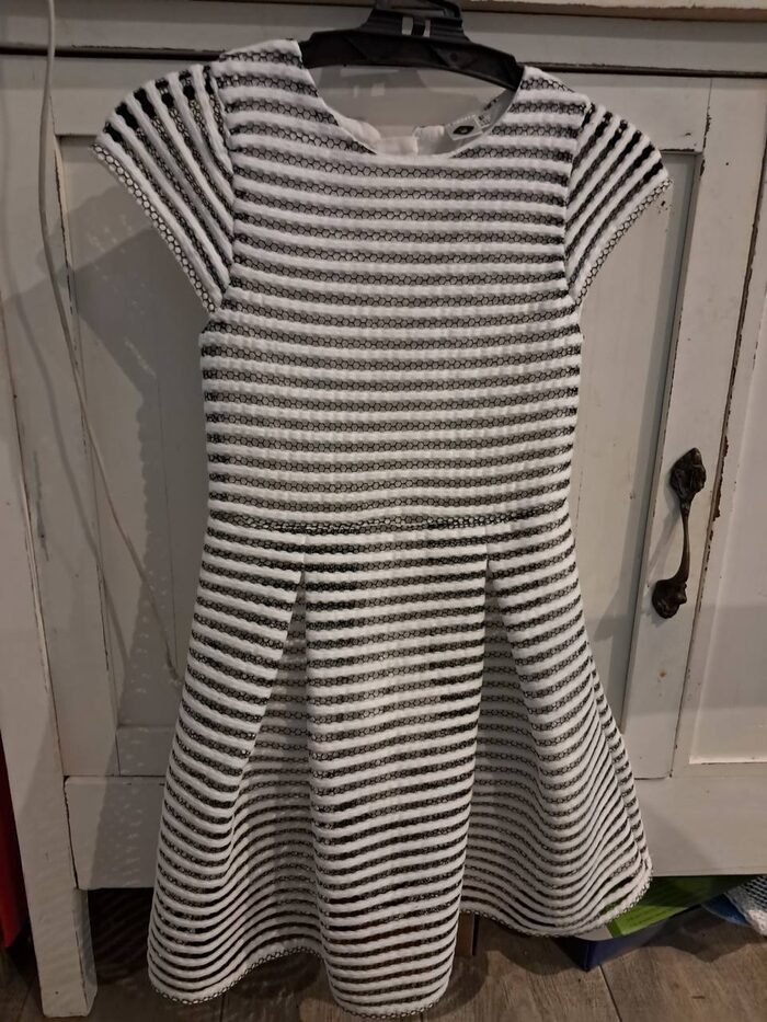 Abitino mai indossato, da cerimonia, adatto alla mezza stagione. In poliestere con fodera in cotone. Età circa 6 anni. .