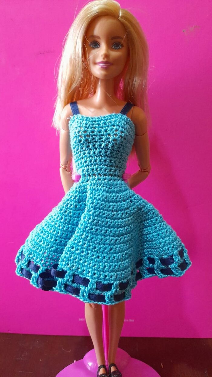 Abito Barbie realizzato a uncinetto nuovo .