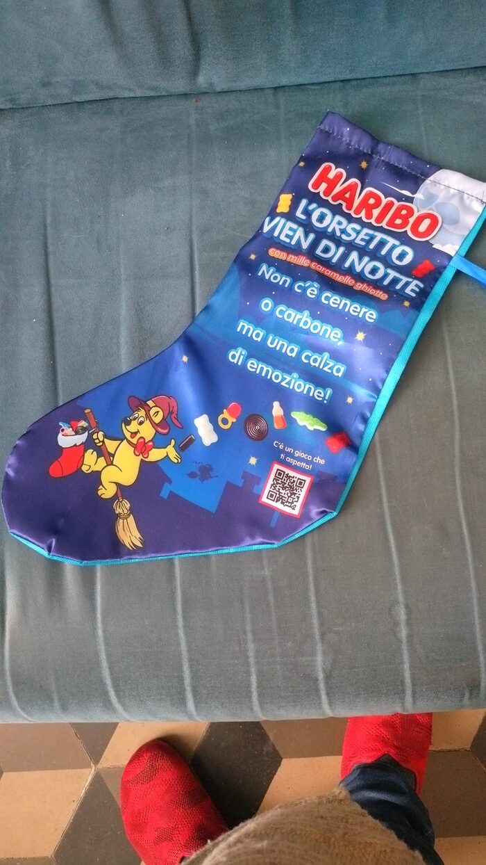 calza da riempire piccola chiusura con il velcro al buio le scritte si illuminano .