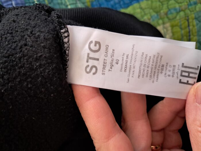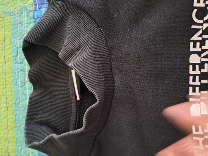 Felpa ragazzo taglia 40, veste 14 anni più o meno. In cotone e poliestere. Ha dei taglietti su una delle maniche,vedi foto .