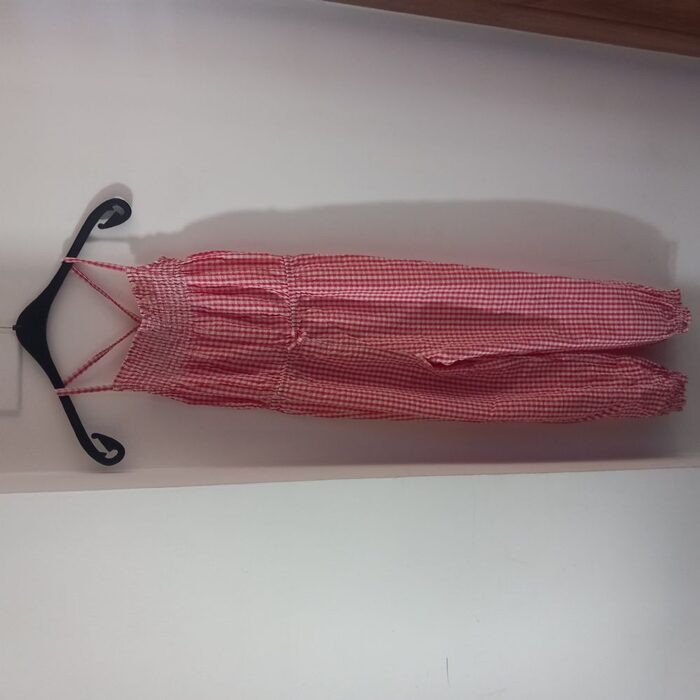 Vestitino come nuovo rosso/rosa a quadretti piccoli, romantico, taglia 7-8 marca H&M. 56% cotone 40% poliestere 4% viscosa .