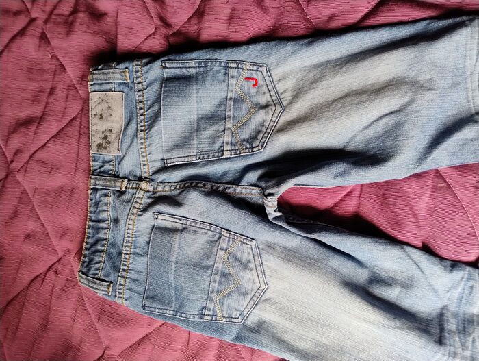 Metto a poco a causa di due difetti uno sulla gamba uno strappo rattoppato e l'etichetta sul dietro consumata.