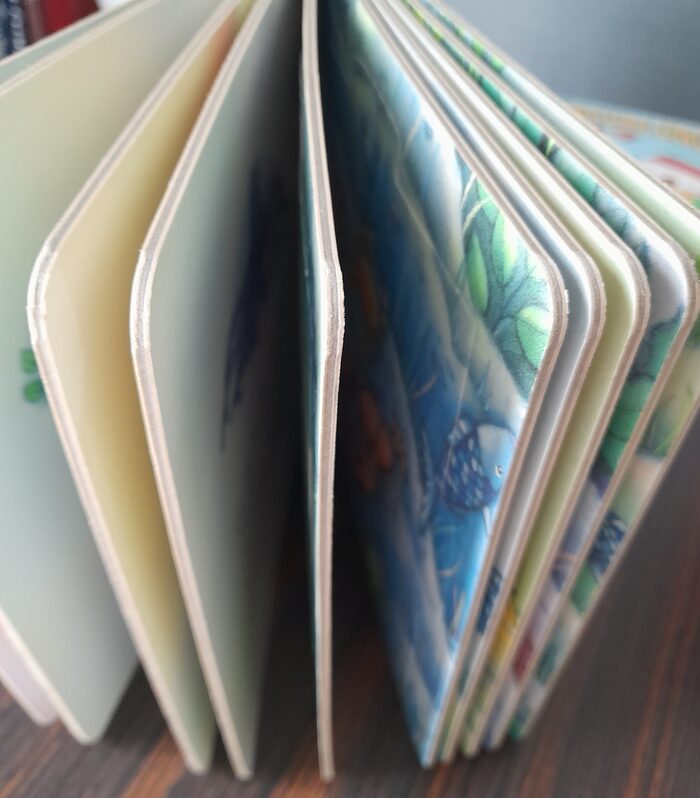 Un libro che parla del mare, pagine spesse e grandi pezzi di un puzzle da ricomporre, un pezzo in ogni pagina. La penna in foto per dare la misura del libro. 16 pagine, cartonato spesso. Misure 20x20x2,5 cm .