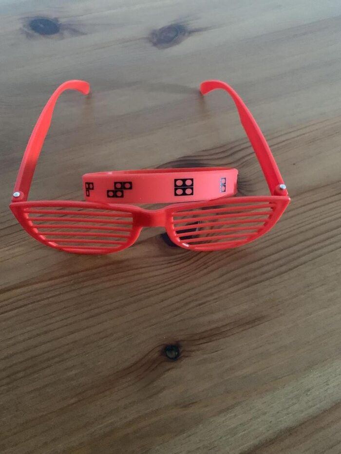 Set occhiali giocattolo misura bimbo + bracciale in gomma ‘game over’. Nuovi non utilizzati, mi sono stati omaggiati ad una festa a tema anni ‘90 e si ispirano a quel periodo :) .