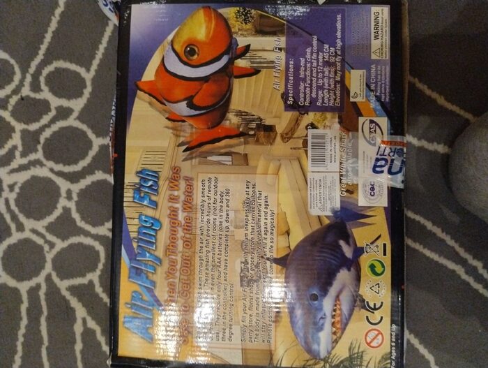 È un pesce pagliaccio fatto a palloncino ma telecomandato, l' ho preso con un baratto ma poi non l' ho mai usato perché è da gonfiare ad elio.Credo sia abbastanza grosso perché come misure sulla scatola da 145x 92 .