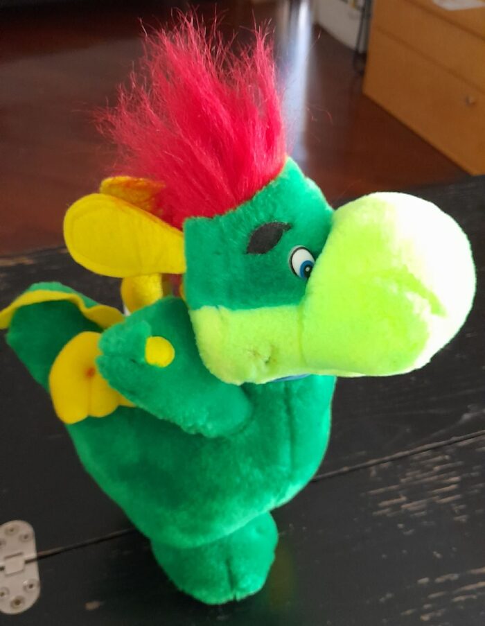 Peluche Drago mascotte di Gardaland “Prezzemolo” importato da Isco Srl, Altezza 34 cm .
