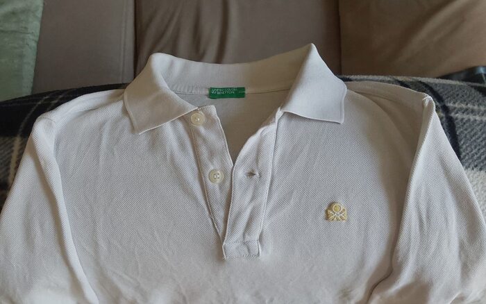 Polo manica lunga Benetton, bianca cotone, 9 anni .