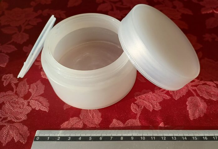 Barattolo in plastica bianco. Conteneva crema mani. Consegna a mano o cillettiva teamite Varese. .