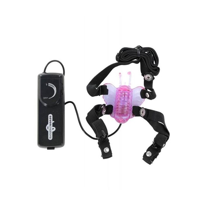 Vibratore femminile a farfalla, indossabile con lacci regolabili. Con telecomando collegato per regolare l'intensità della vibrazione.