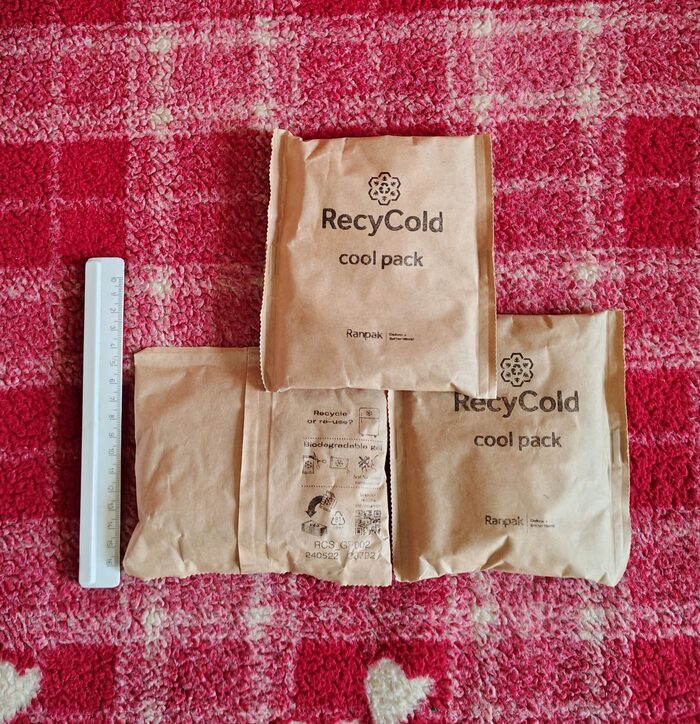 Regalo 3 ghiaccietti riutilizzabili, Recycold cool pack, con gel interno biodegradabile. Basta metterli in freezer.