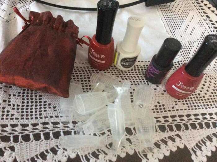Lotto composto da 10 pinze pvc proteggi /asciuga smalto nuove, per smalto normale4 boccette di smalto semi permanente usate e aperte da un po’ di tempo, da provare o utilizzare per usi creativi .