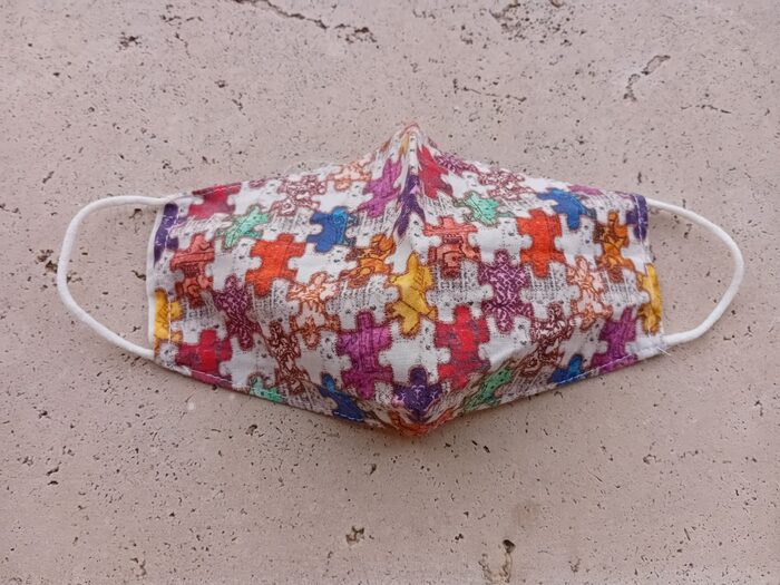 Cotone doppio strato, con aperture laterali per inserire filtri. Mai usata, nuovissima, ancora piegata. Avevo fotografato anche il retro ma la foto non c'è più. .