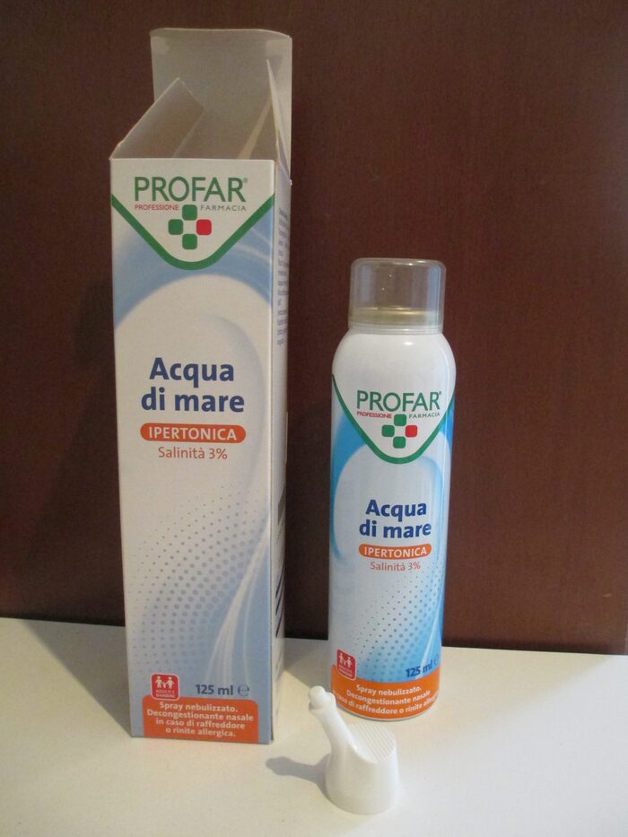 Profar Acqua di Mare Ipertonica, uno spray nasale nebulizzato indicato come decongestionante.