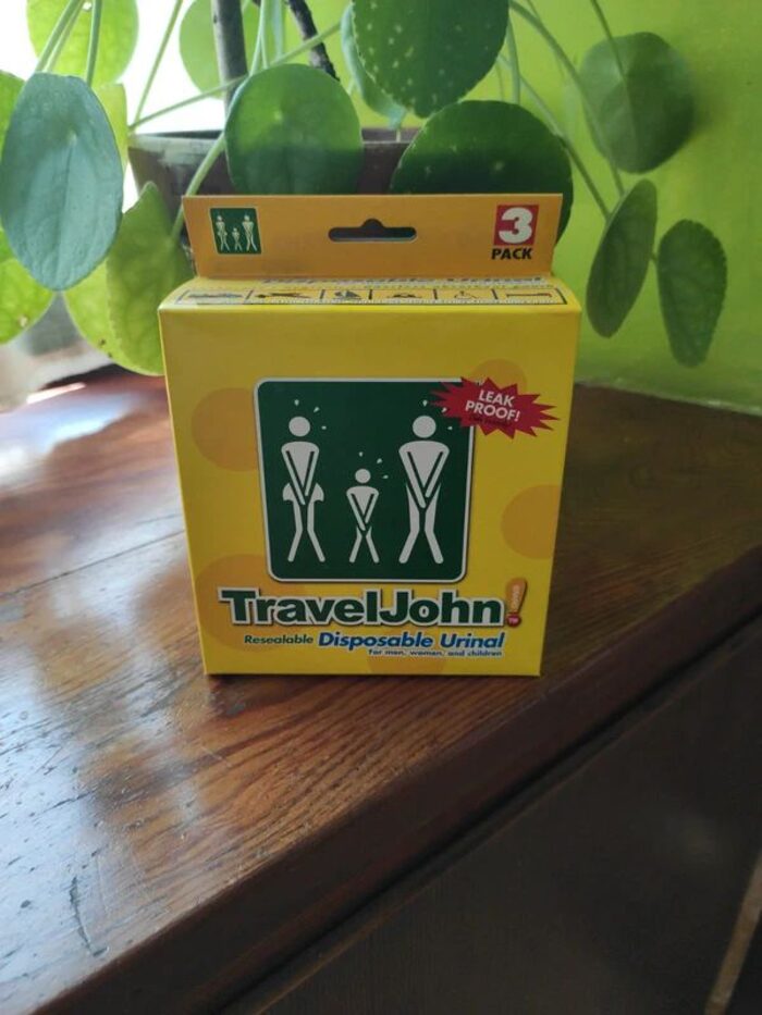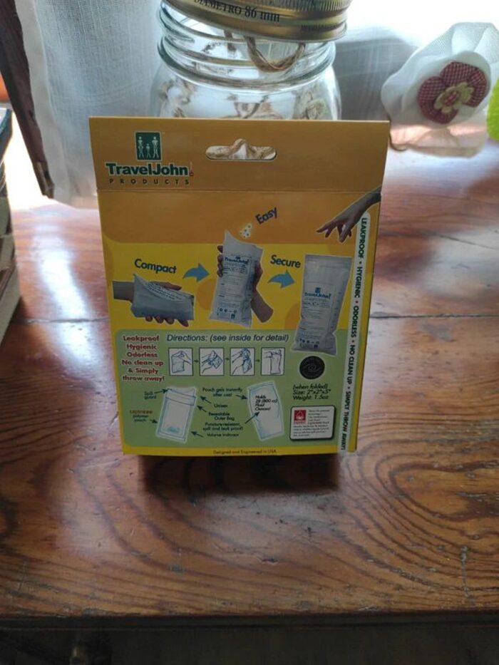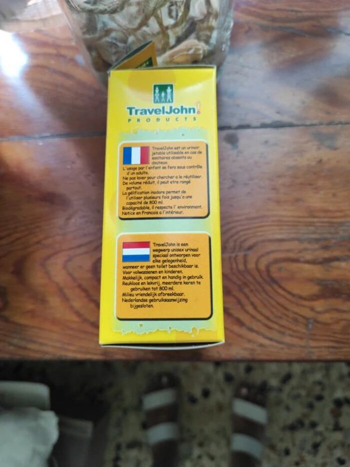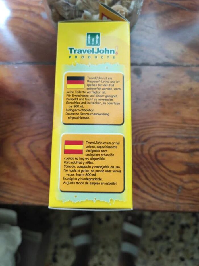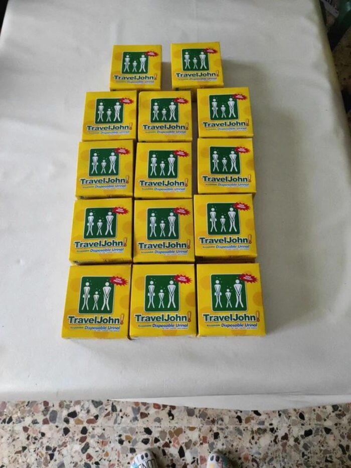 Travel John è progettato per essere utilizzato da uomini, donne e bambini in situazioni in cui non è disponibile una toilette, come in viaggio o in caso di emergenza. La confezione contiene tre pezzi. 1 credito si riferisce ad una confezione ma ne ho uno stock a disposizione (24 scatole contenenti 6 confezioni ciascuna). Se si tratta di poche confezioni posso spedire a vostre spese, se no il ritiro preferirei a mano perchè uno scatolone da 12 scatole oltre che voluminoso è anche molto pesante. .