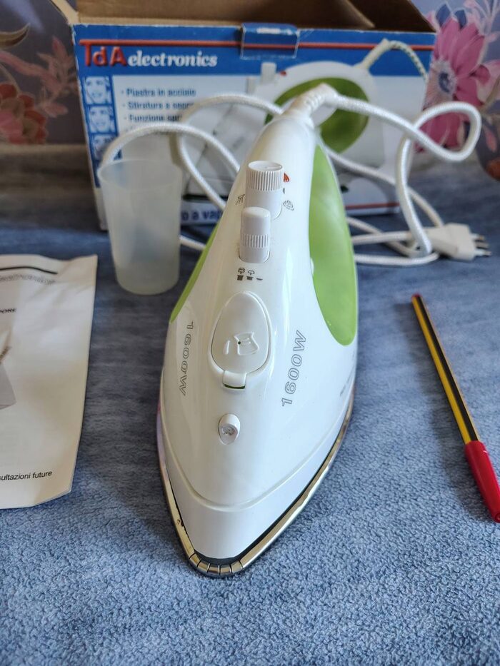 Ferro da stiro a vapore completo di scatola, libretto e dosatore acqua.Perfettamente funzionante sia a secco che a vapore. .