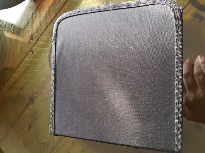 Porta cd / dvd con 6 buste in plastica e divisori in cartatessuto - molto sfruttato ma integro, con chiusura velcro .