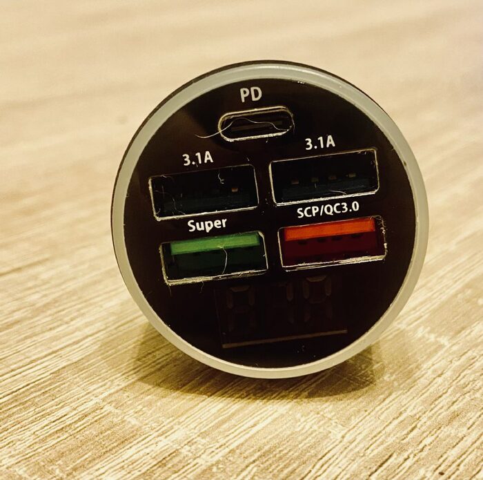 USB 5 vie da collegare all accendisigari della macchina per ricaricare telefono, tablet ecc. Nuovo, mai usato .