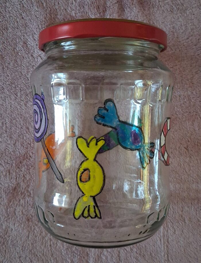 Barattolo ci vetro disegnato .