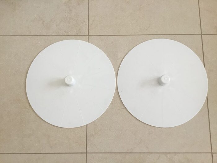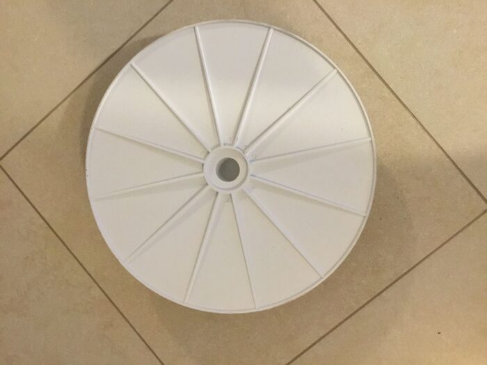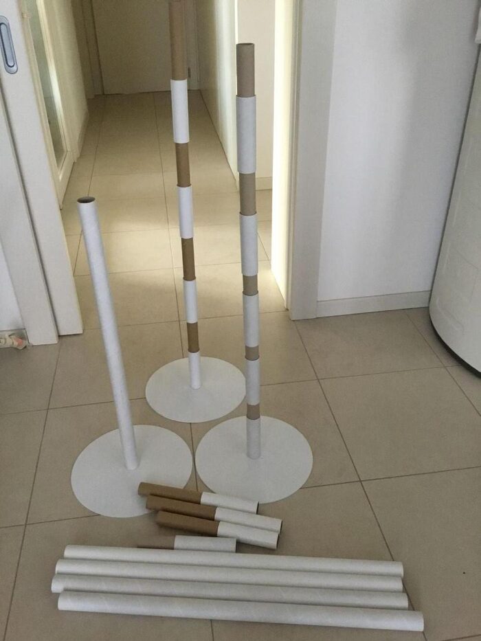 Una base in plastica bianca rotonda diam 34 cm, con supporto centrale di diametro 3,5 cm. Per ciascuna metterò 4-5 tubi in cartone spesso che si innestano sulla base e fra di loro. Potrei avere per ciascuna base anche il tubo bianco lungo da solo 80 cm, di cui i primi sarebbero le prolunghe (ma questi da 80 li riesco a dare solo con consegna a mano o con spedizione diretta a vs carico, perché non stanno dentro agli scatoloni delle collettive).Rimanenze di allestimenti promozionali eseguiti per lavoro in supermercati. 2 crediti per base + relativi tubi.Magari qualcuno si inventa un uso alternativo. Ne ho una decina a disposizione .