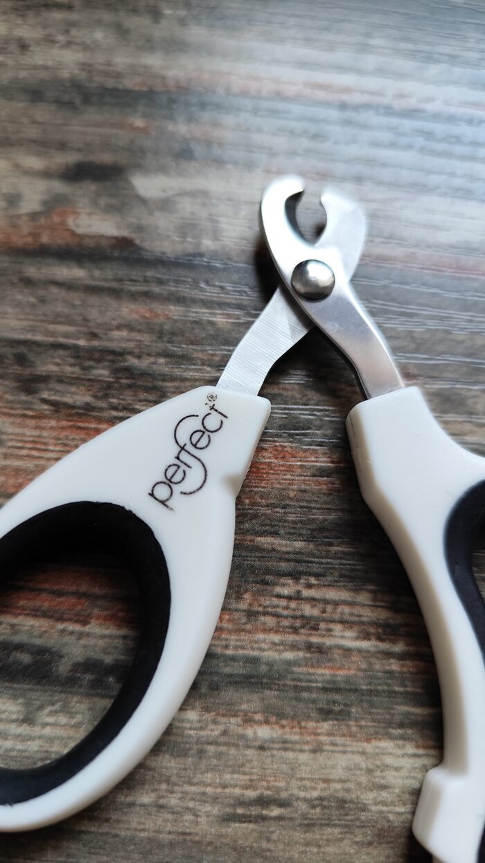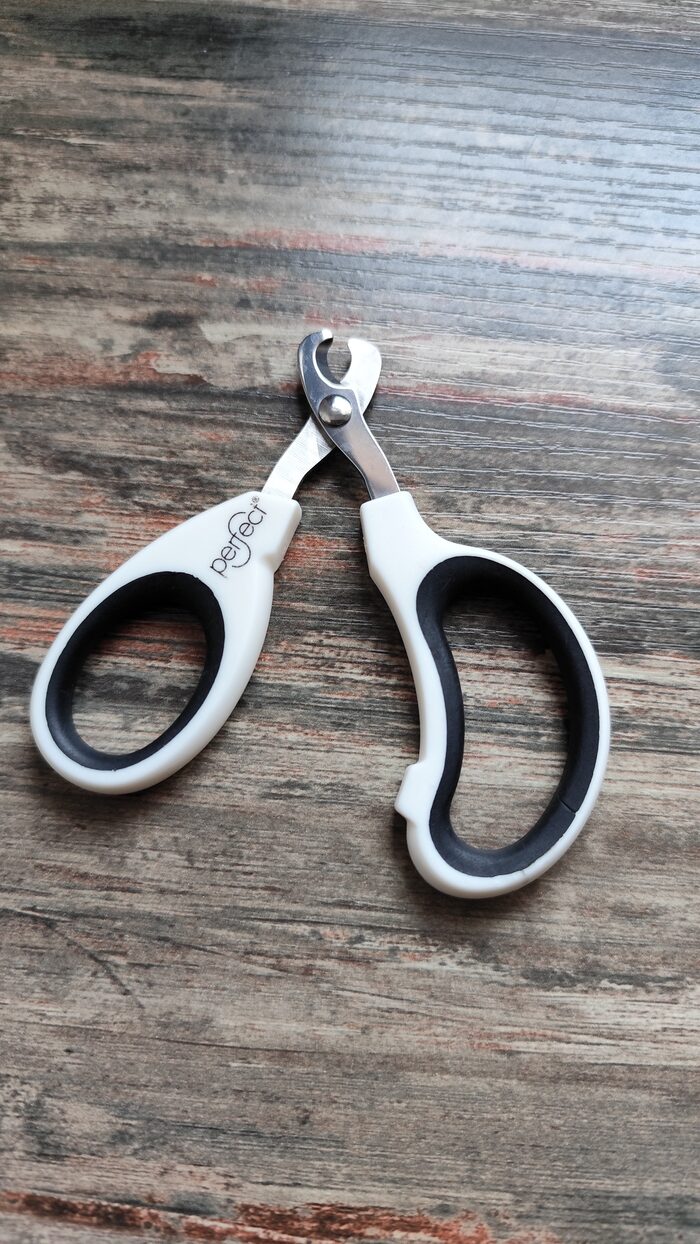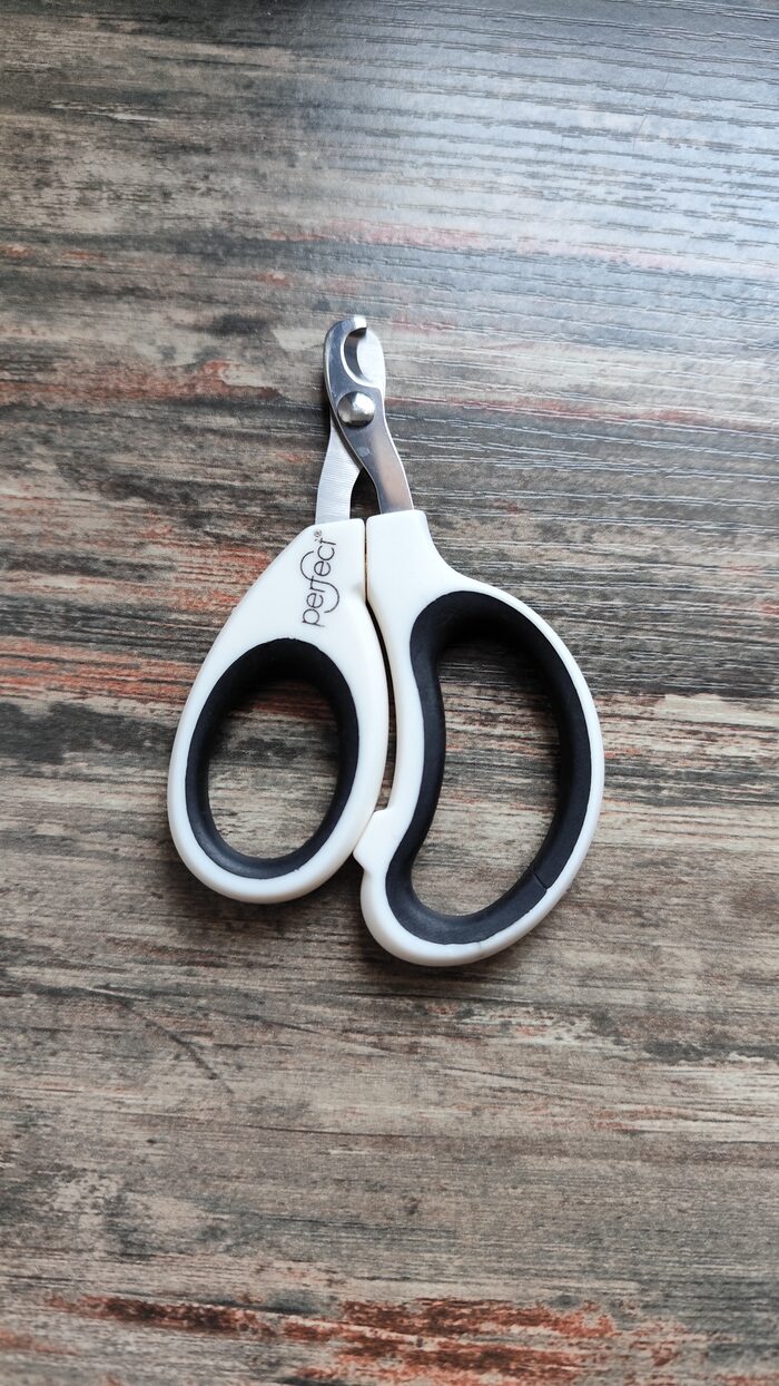 Forbici curve per tagliare le unghie al gatto o ad animali da compagnia di piccola taglia, brand Perfect, di ottima qualità, usate ma in ottime condizioni, come nuove. Impugnatura in plastico con gomma e lama in acciaio.