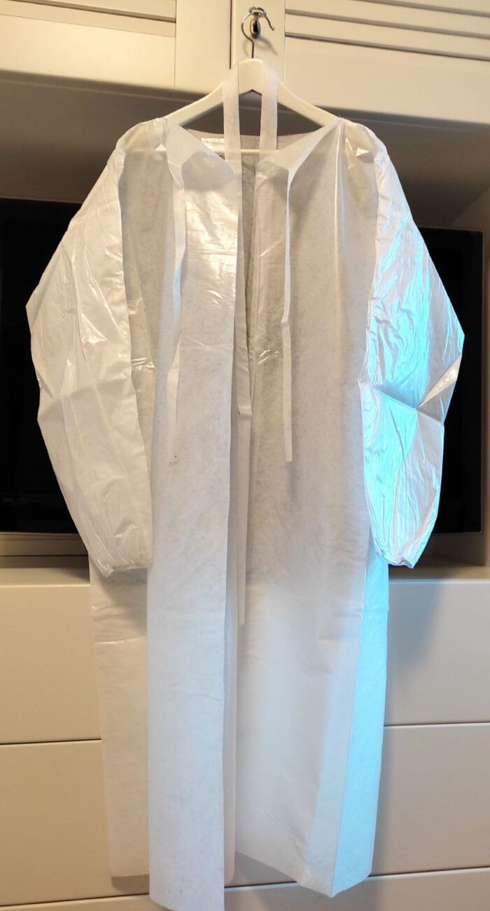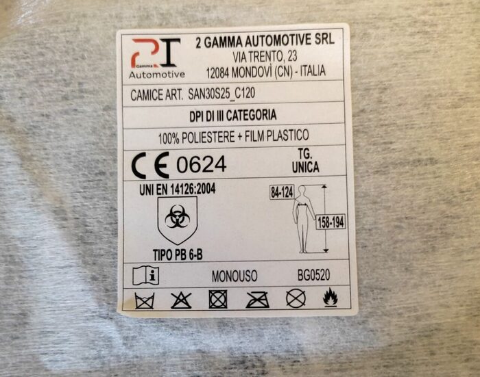 Set composto da 3 camici protettivi di robusto poliestere plastificato, classificazione DPI di terza categoria (non sono di quei camici in tessuto non tessuto leggero).