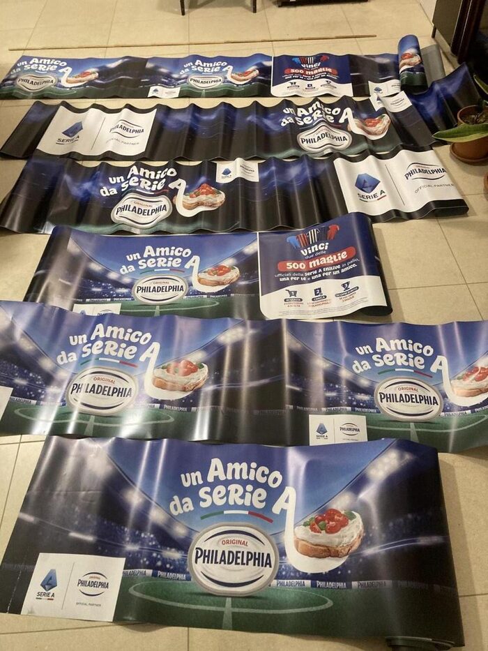 Strisce in materiale plastico flessibile, con immagini promozionali sul fronte, completamente grigie sul retro dove c’è nella parte alta una parte adesiva togliendo la bandella che la ricopre. Altezza 42 cm. Lunghezze varie: 280, 435, 528, 320, 425, 525, 520.Per riciclo creativo, usando delle parti per collage o altro. … io ci ho circondato l’orto per salvarlo dalle lepri. Altri annunci simili con soggetti diversi.Invio arrotolate. Le ondulazioni che vedete spariscono arrotolandole al contrario.1 credito ciascuna. A chi spende almeno 3 crediti sulla mia vetrina 1 in regalo se richiesta, 2 in regalo a chi ne spende almeno 5 a scelta fra i vari annunci simili. .