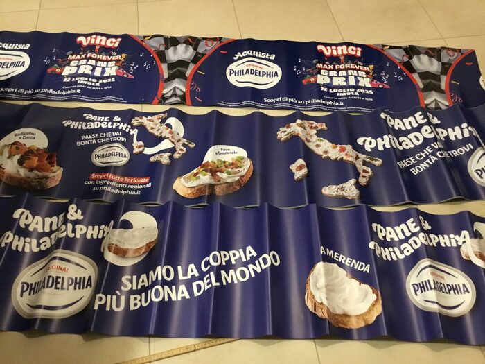 Strisce in materiale plastico flessibile, con immagini promozionali sul fronte, completamente grigie sul retro dove c’è nella parte alta una parte adesiva togliendo la bandella che la ricopre. Altezza 42 cm. Lunghezze varie: 233, 425, 420.Per riciclo creativo, usando delle parti per collage o altro. … io ci ho circondato l’orto per salvarlo dalle lepri. Altri annunci simili con soggetti diversi.Invio arrotolate. Le ondulazioni che vedete spariscono arrotolandole al contrario.1 credito ciascuna. A chi spende almeno 3 crediti sulla mia vetrina 1 in regalo se richiesta, 2 in regalo a chi ne spende almeno 5 a scelta fra i vari annunci simili. .