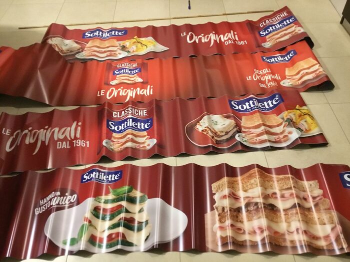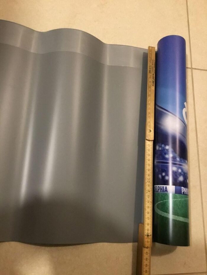 Strisce in materiale plastico flessibile, con immagini promozionali sul fronte, completamente grigie sul retro dove c’è nella parte alta una parte adesiva togliendo la bandella che la ricopre. Altezza 42 cm. Lunghezze varie: 303, 305, 230, 528.Per riciclo creativo, usando delle parti per collage o altro. … io ci ho circondato l’orto per salvarlo dalle lepri. Altri annunci simili con soggetti diversi.Invio arrotolate. Le ondulazioni che vedete spariscono arrotolandole al contrario.1 credito ciascuna. A chi spende almeno 3 crediti sulla mia vetrina 1 in regalo se richiesta, 2 in regalo a chi ne spende almeno 5 a scelta fra i vari annunci simili. .