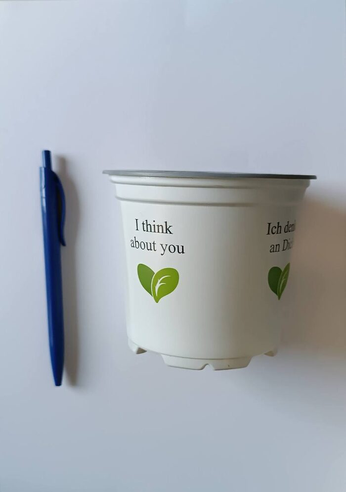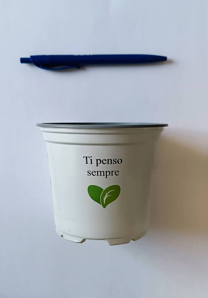 2 vasi verdialtezza 7,7 cmdiametro base 7 cmdiametro superiore 10 cmin plastica+1 vaso bianco con scritta romantica in varie linguealtezza 8,5 cmdiametro base 8 cmdiametro superiore 10,5 cmin plastica .
