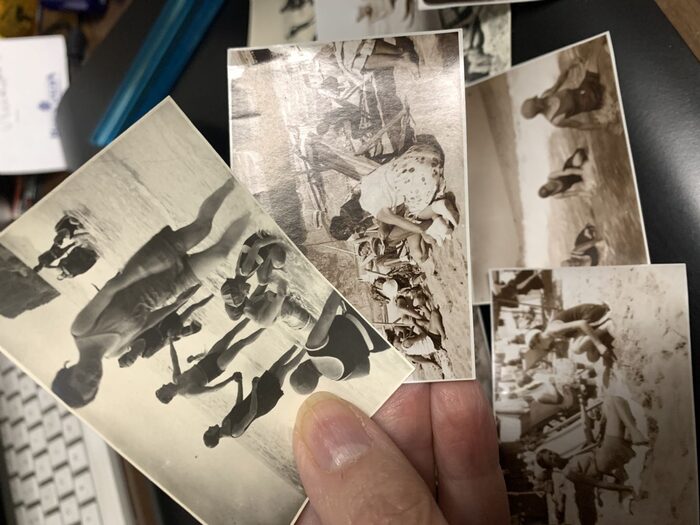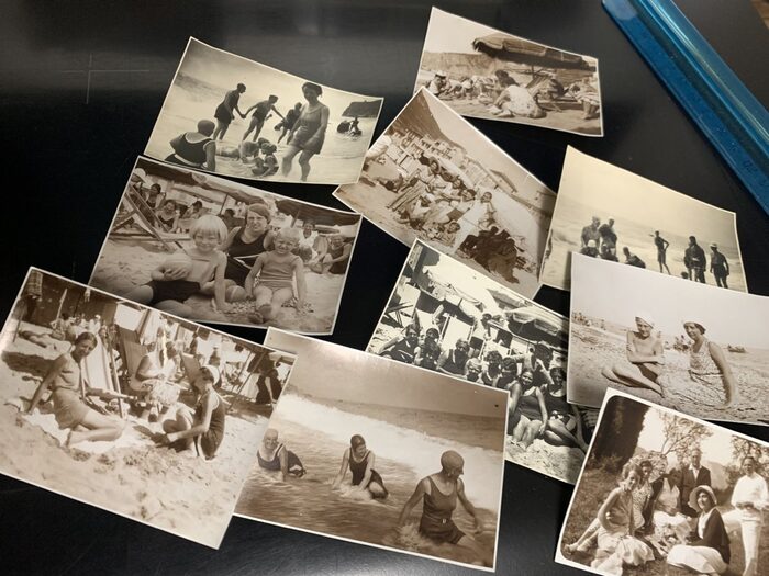 10 foto piccole (8x5,5 cm circa) degli anni ‘30, originaliAlcune sulla tonalità marroncina, altre in bianco e nero con toni caldi. Probabilmente Finale Ligure, o Loano, ma non c’è scritto da nessuna parte, non ci sono particolari riconoscibili ( a meno che non si sia un residente o un frequentatore abituale) . Scrivo Finale o Loano perché assieme alle foto c’erano degli appunti. Bellle per gli abiti e per l’atmosfera. Sono state fatte quasi tutte sulla spiaggia.Dimensione: micro .
