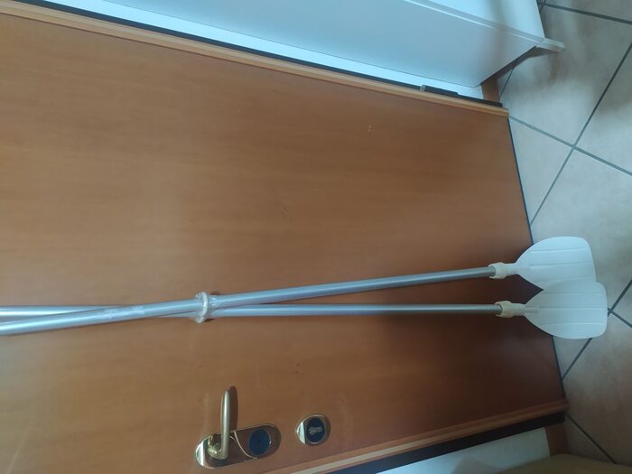 Due remi in plastica e metallo, lunghezza cm 143. Scambio solo a mano, posso far arrivare a Varese, Milano o Brianza previo accordo. .