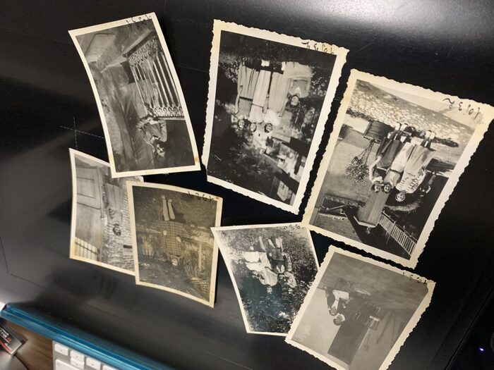 7 foto piccole (6x9 cm circa) anni ‘30Bianco e neroData ( anno) scritto a penna in basso Stampe amatoriali di foto familiari Segni di colla sul retroDimensione: micro .