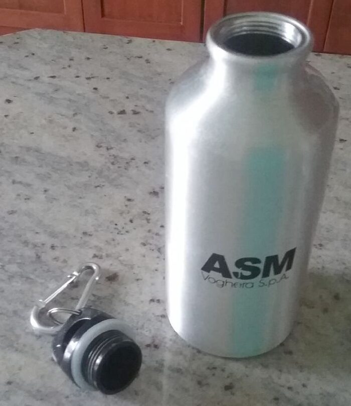 Borraccia in alluminio, presenta qualche ammaccatura, usata pochissimo.