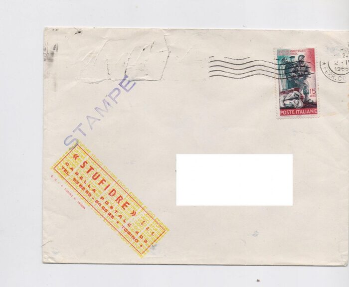 affrancato con francobollo 1965 e bollata nel 1966 .
