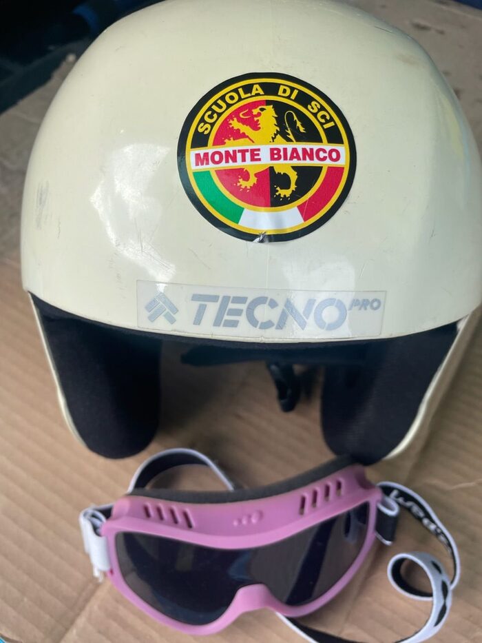 caschetto da sci per bambini, taglia visibile in foto. Compresi gli occhiali di protezione da bambina visibili in foto. .