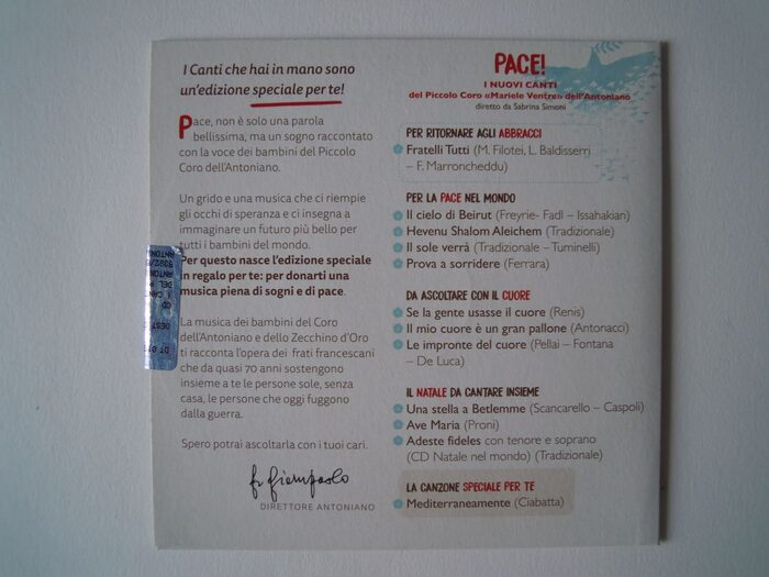 CD con canti del coro dell'Antoniano. Regalato, ma non l'ho mai ascoltato. .