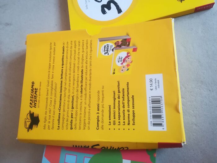 Libro con guida per i genitori "Compio tre anni". Prezzo di copertina 14,90€.La guida per i genitori mai sfogliata, il libro per bambini è bellissimo, contiene storie molto istruttive sul controllo della rabbia, la gelosia verso un fratellino, ecc. Bei disegni e belle storie.Con qualche sbucciatura in copertina, ma può aiutare molti altri bambini .