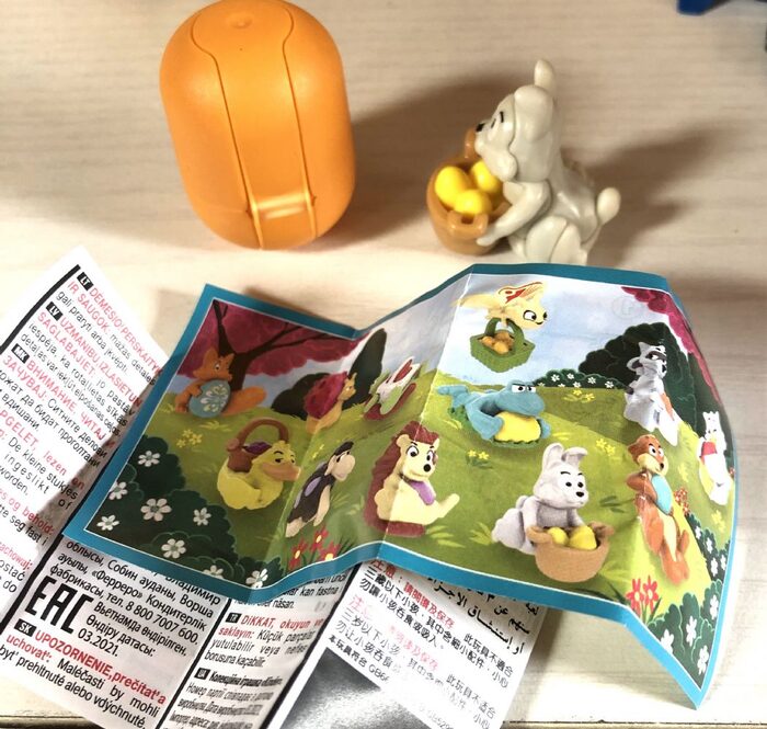 Sorpresina Kinder di qualche anno fa, degli ovetti ( soggetto Pasquale, ma degli ovetti, piccola)Montata ora per vedere se completaVU314Ovetto in plasticaCartineSorpresina: coniglietto con cesto con uova .