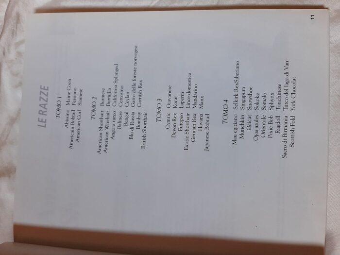 Enciclopedia del gatto in 4 volumi, in buono stato, rovinati un po'' soprattutto agli angoli, grande formato, pagine patinate a colori.Nel volume 1 sono state ritagliate 5 pagine (per togliere delle immagini); nel volume 2 invece ne sono state ritagliate 2; intatti i volumi 3 e 4. (vedi foto)Molto bella e interessante, spiega tutto sui gatti, dalle razze al rapporto con gli umani e anche l''aspetto scientifico dell''animale.In grande formato, e con tantissime immagini a colori, edizione del 2003. .