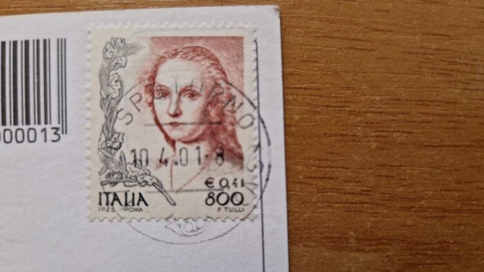 francobollo viaggiato Italia (non lo stacco dalla cartolina per non rovinarlo perché non sono esperta) .