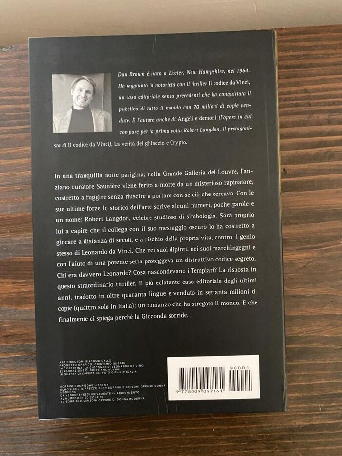Il Codice da Vinci di Dan Brown (Autore), Riccardo Valla (Traduttore). Copertina flessibile 2009.In una tranquilla notte parigina, nella Grande Galleria del Louvre, l''anziano curatore Saunière viene ferito a morte da un misterioso rapinatore, costretto a fuggire senza la sua preda. Con le sue ultime forze lo storico dell''arte scrive alcuni numeri, poche parole e un nome: Robert Langdon, celebre studioso di simbologia. Sarà proprio lui a capire che con il suo messaggio oscuro Saunière lo ha costretto a giocare a distanza di secoli, e a rischio della propria vita, contro il genio stesso di Leonardo da Vinci. La scoperta è sconvolgente: il grande pittore rinascimentale proteggeva un distruttivo codice segreto. Con gli enigmi nascosti nei suoi dipinti, con i suoi ingegnosi marchingegni e con la spaventosa forza di una setta segreta che da secoli ha sempre tentato di trasformare la storia dell''umanità. Chi era davvero Leonardo? Cosa nascondevano i Templari? Quale chiave dà accesso al segreto del Santo Graal? .