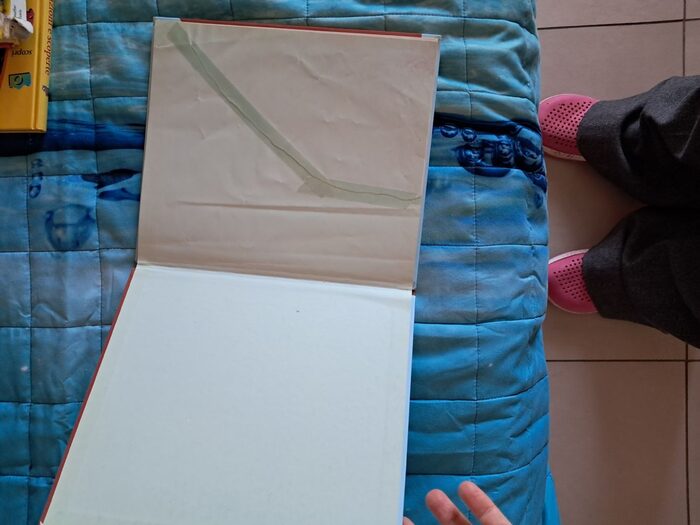 Libro con copertina rigida, in ottimo stato se non fosse per la prima pagina strappata e rattoppare, vedi foto. Libro di circa 30 pagine .