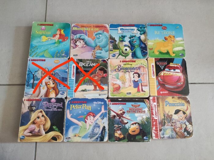 Lotto di 10 librottini Disney, libri di piccole dimensioni cartonati, alcuni usati di più altri di meno. Cmq ancora molto sfruttabili. Ogni librottino ha circa 14 pagine10 crediti tutti altrimenti 2 crediti al pezzo .
