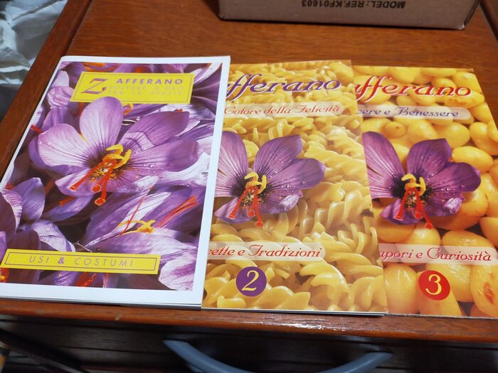 3 ricettari a tema zafferano, in perfette condizioni, 5 crediti tutti e 3 .