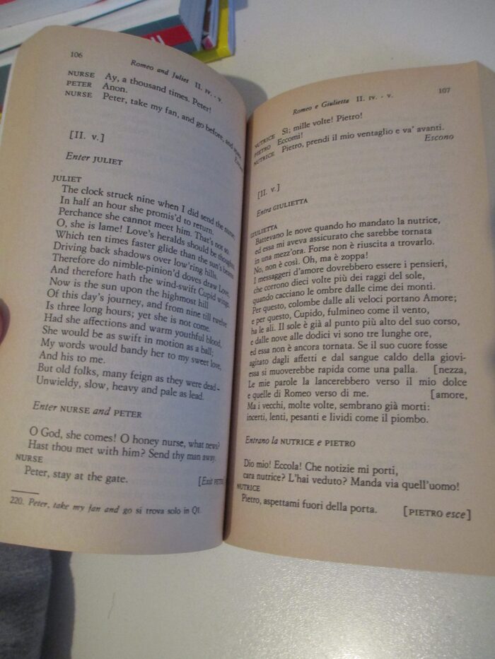 Libro dell'opera "Romeo e Giulietta" di Shakespeare.Con testo originale a fronte.Editore Mondadori. .